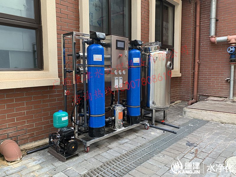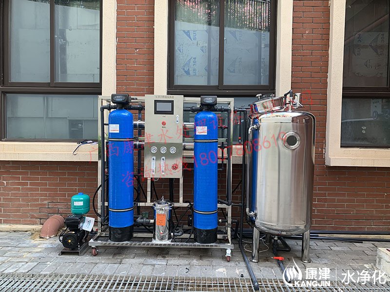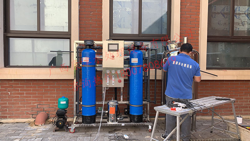项目名称:容闳幼儿园直饮水设备工程 设备名称:0.5吨反渗透纯水设备 工艺流程:石英砂过滤器-活性炭过滤器-精密过滤器-臭氧杀菌-高压泵-反渗透膜组-无菌水箱
