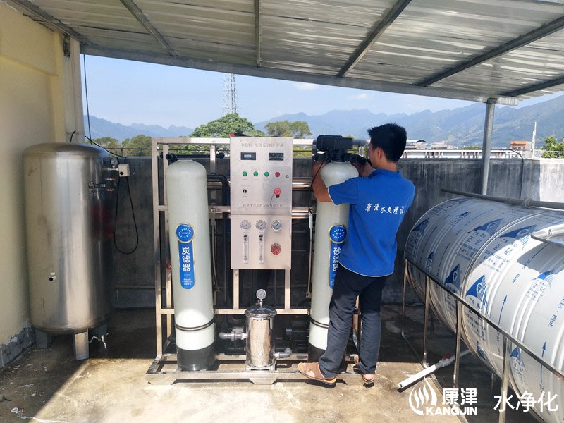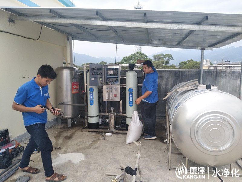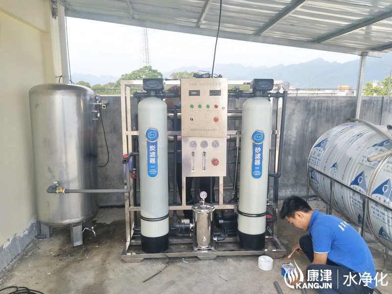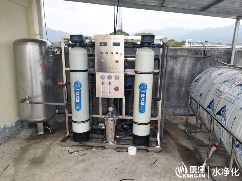 工艺流程:原水泵-石英砂过滤器-活性炭过滤器-软化水装置-精密过滤器-高压泵-反渗透膜组-净水箱-变频恒压供水-末端开饮机
